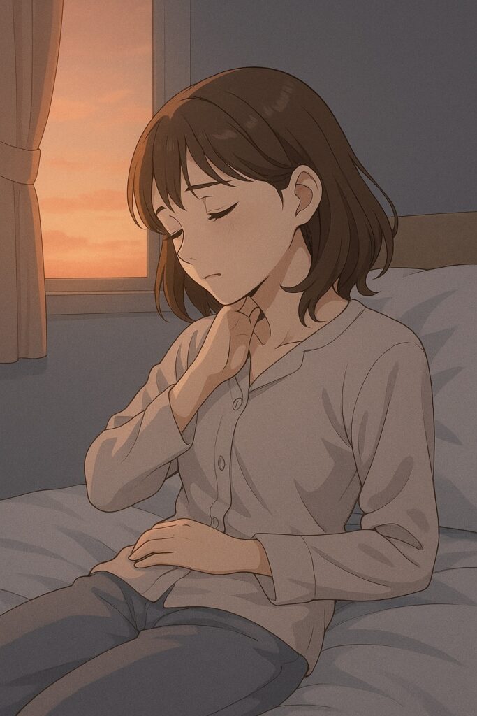 丸まった背中や巻き肩の姿勢では、胸郭が圧迫されて呼吸が浅くなりがちです。浅い呼吸が続くと、自律神経が乱れて眠りの質が低下。結果として「寝ても疲れが取れない」状態を招くことがあります。