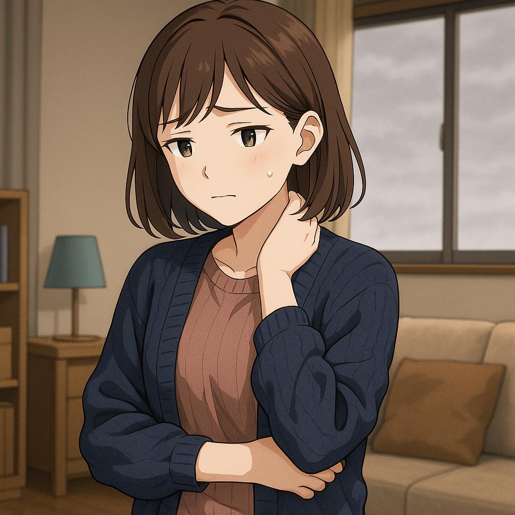 猫背になると、肩が内巻きになり、自然と頭の位置が前に出ます。これが「ストレートネック」や「巻き肩」と呼ばれる状態を引き起こし、首まわりの筋肉が硬くなりやすくなります。