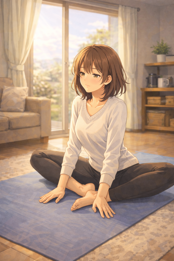 長時間座った姿勢や冷えが続くと、骨盤や股関節まわりの筋肉がこわばりやすくなります。