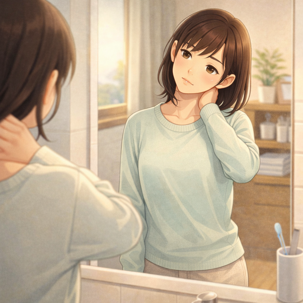 日常生活で猫背の姿勢が続くと、首や肩まわりの筋肉が緊張しやすい状態になります。その状態で休んでも、十分に筋肉が緩まず、朝の重さやだるさとして感じやすくなります。姿勢のバランスを整えることが、朝の快適さにつながります。