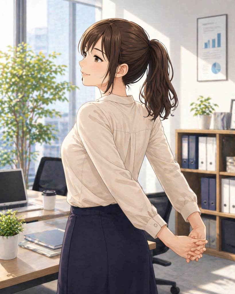 前かがみの姿勢が続くと、肩甲骨が外側に広がりやすくなります。その状態が続くことで背中や肩まわりの筋肉が緊張し、動きにくさや重だるさにつながることもあります。