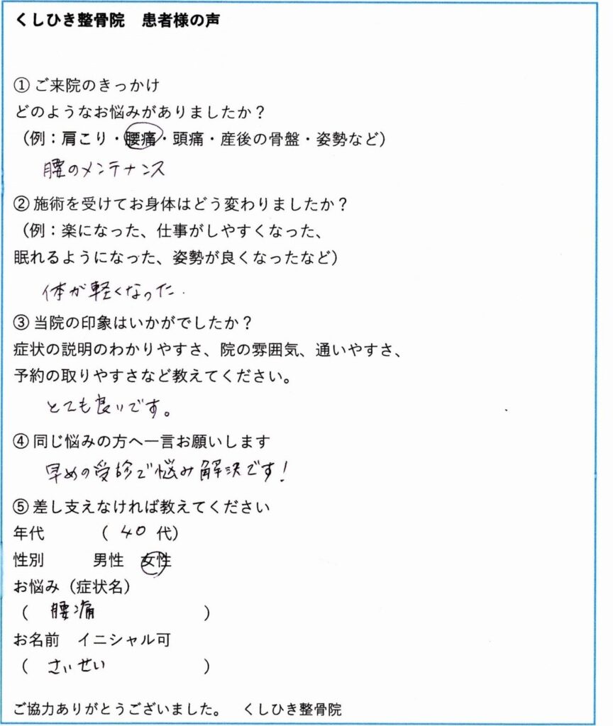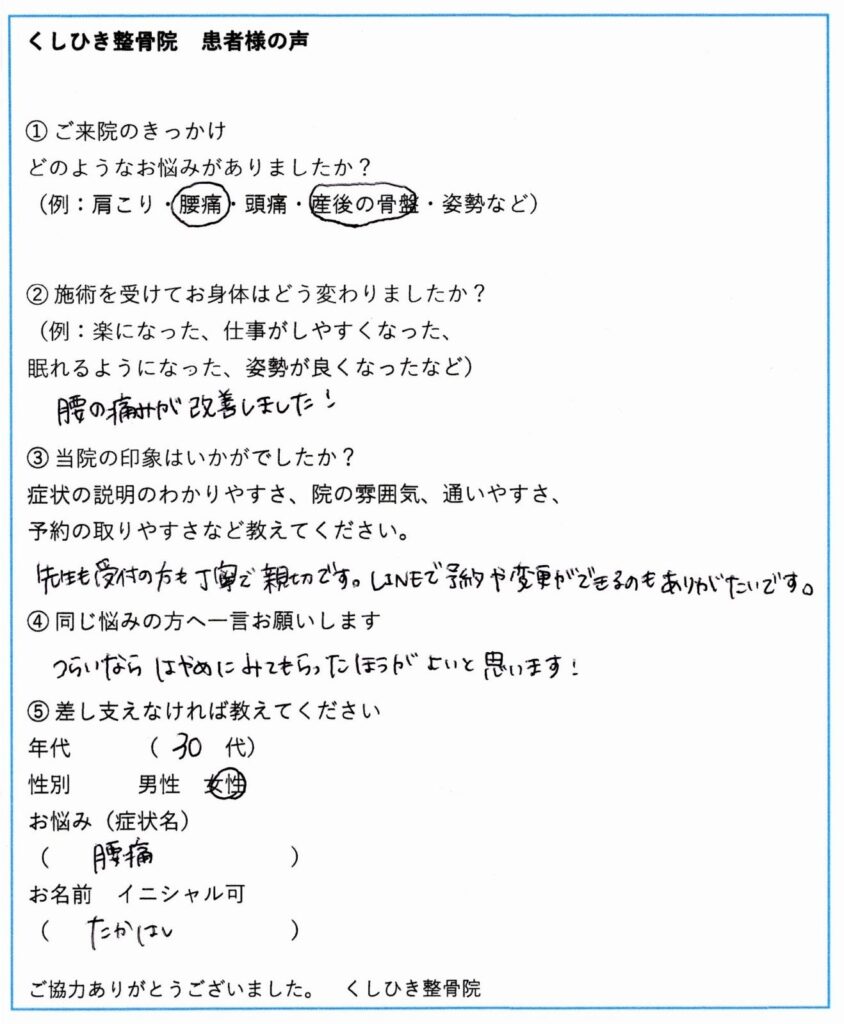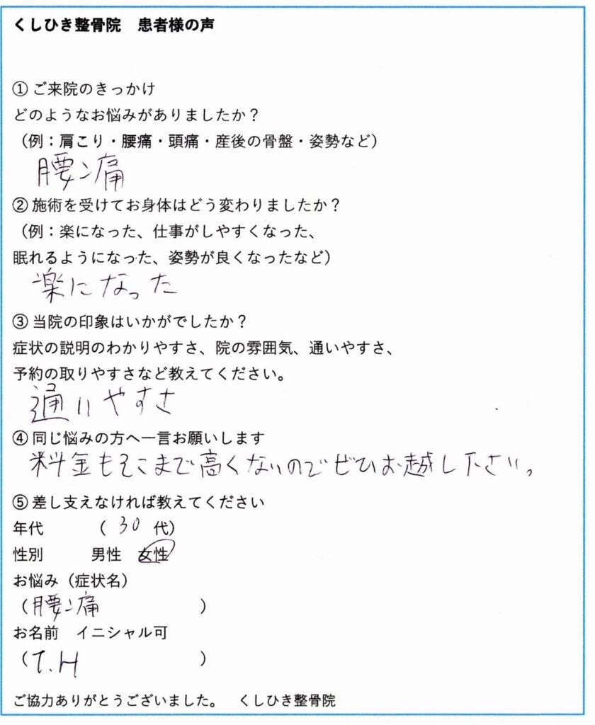 当院をご利用いただいた患者様からいただいた感想をご紹介します。