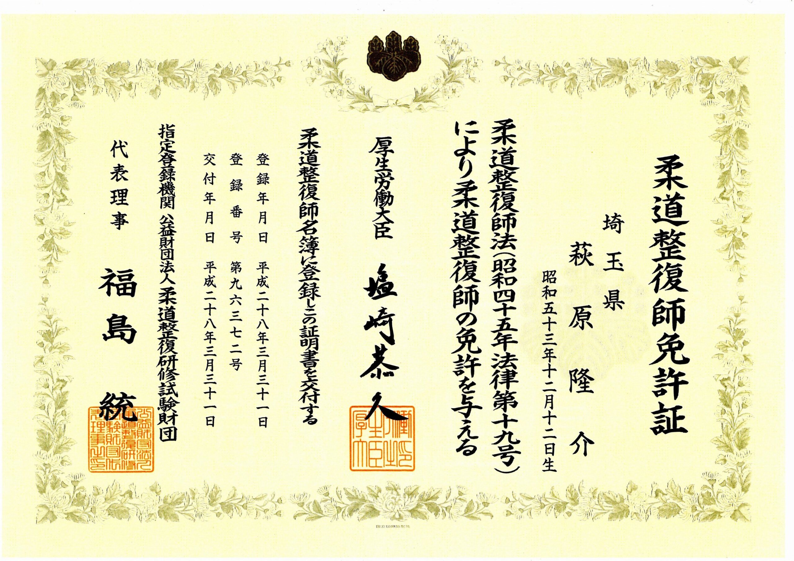 その経験から、「患者様に寄り添える素晴らしい仕事だ」と感じ、柔道整復師の道を歩むことを決心しました。